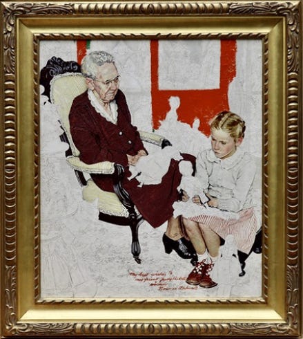 To be sure, not all of them thought that way— my wife and her siblings gave their father a 20-speed bike when he was 80— but there’s a reason why Norman Rockwell, born in the late 1800s, portrayed grandmas as he did. Sensible shoes, hair in a bun, sewing, knitting, baking. Not biking.