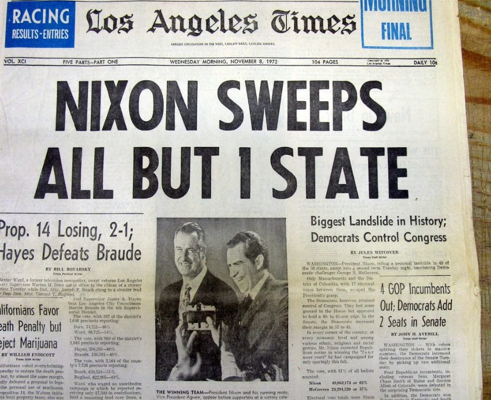 Then came election night. McGovern lost 49 states to Nixon, every state except Massachusetts.