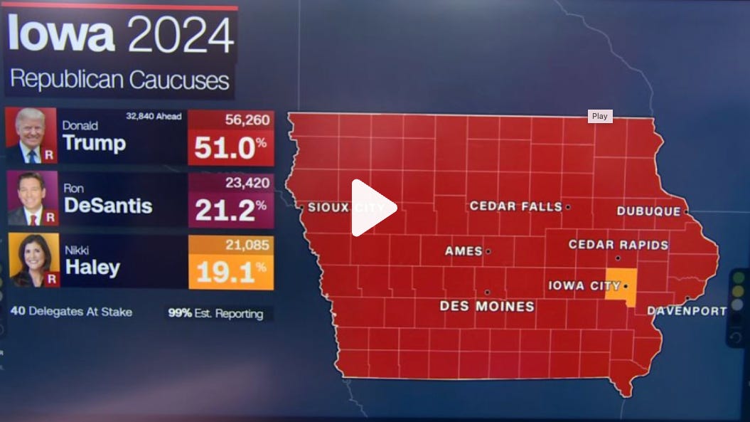 Beyond that, we can reach two easy conclusions from the caucus results. One is, after winning more than 50% of the caucus vote, Trump owns Iowa, at least the Republican side of it. The other is, after winning more votes than all his rivals combined despite all the impeachments and criminal counts and Hitlerian language and authoritarian agendas and crude behavior, Trump owns the GOP.