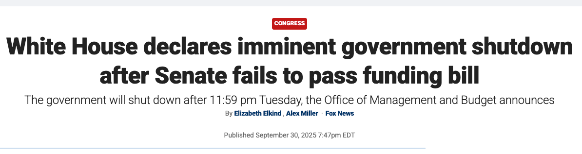 And can you believe how serious the Republicans were about avoiding a shutdown? The answer is, they weren’t. Although the House would have been needed to reconcile changes the Senate might have made to its funding bill, Speaker Mike Johnson already had adjourned the House and sent them home. Let that sink in: on the precipice of the shutdown, Speaker Johnson sent his people home.