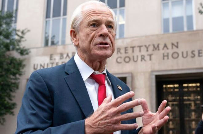 We might get a collection of ex-cons speaking for the United States of America. Last week Trump appointed Peter Navarro to be his senior counselor for trade. Navarro served time earlier this year for contempt of court in connection with the January 6th investigation. That would be Trump’s senior counselor.